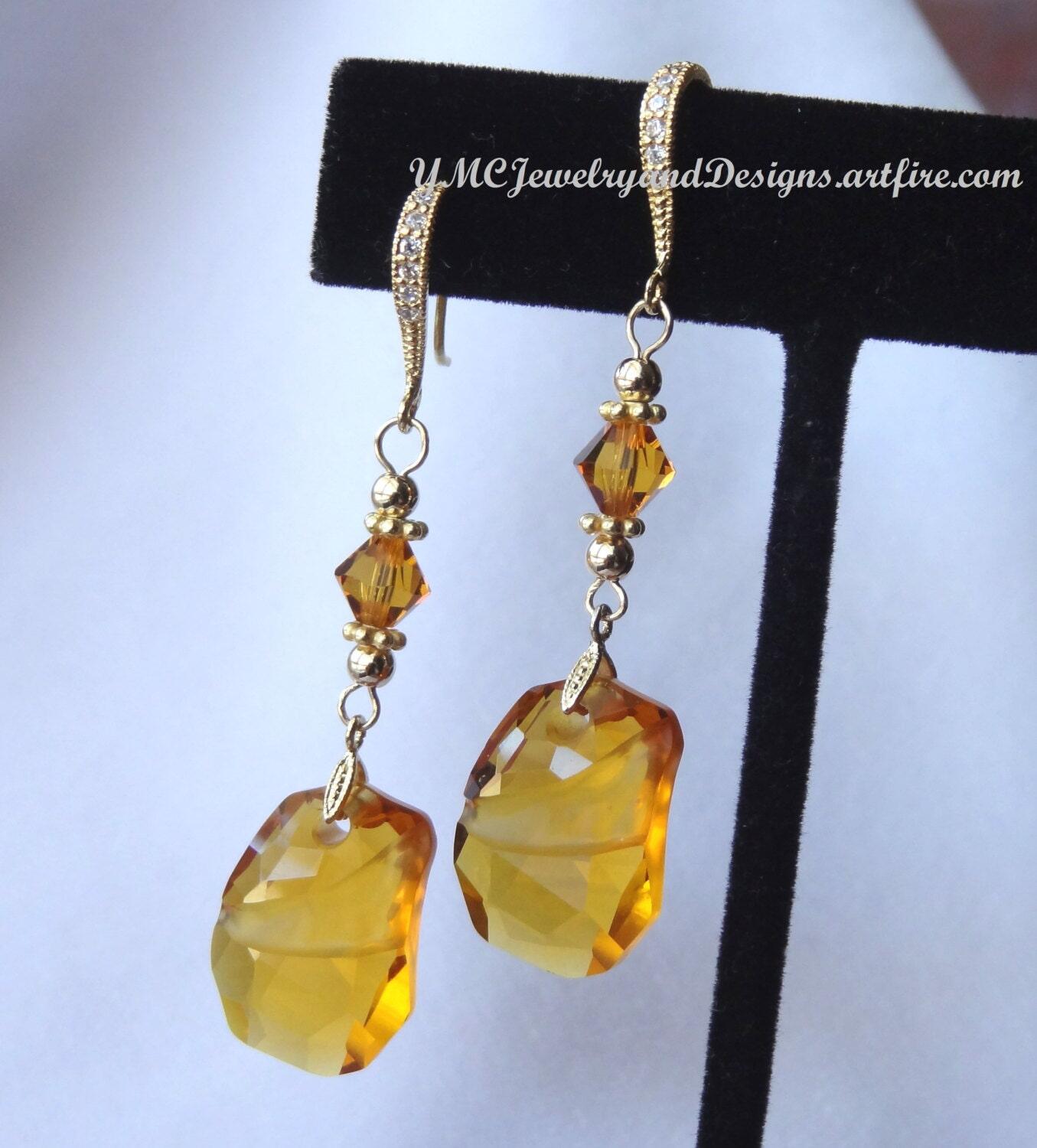 Gold Cubic Zirconia Topaz Earrings, Wedding, Bridesmaids Earrings, Mother of the Bride, Mother of the Groom, November Birthstone Earrings