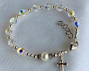 Real Freshwater Pearl Baby Toddler Cross Bracelet,First Commu...