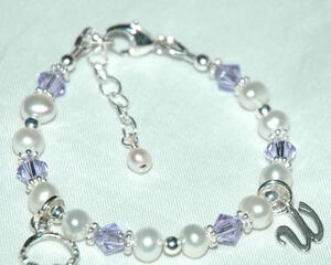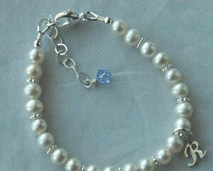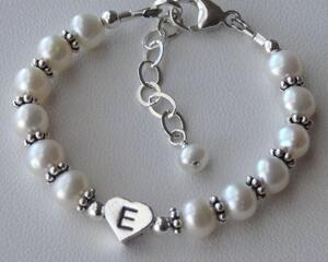Sterling Silver Baby Pearl Initial Personalized Children Brac...
