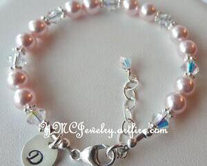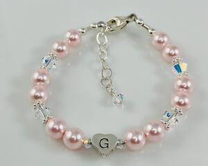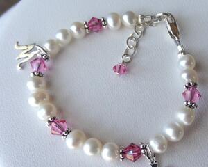 Baby Pearl Initial Children Bracelet,Personalized Baby Pink P...