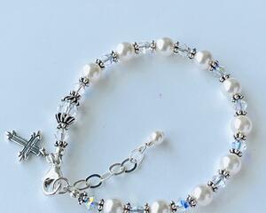 First Holy Communion Bracelet-Pearl Silver Rosary Bracelet-Ba...