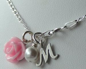 Flower Initial Children Girl Necklaces,Initial Monogrammed Ne...