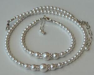 PRESTIGE Crystal Rhinestone Pearl Round Necklace Bracelet- SE...