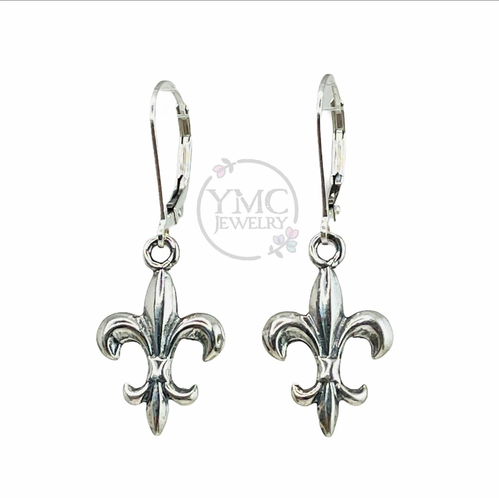 These earrings feature sterling silver Fleur de Lis charms which dangle from sterling silver lever backs ear wires.